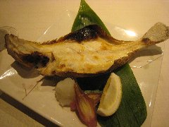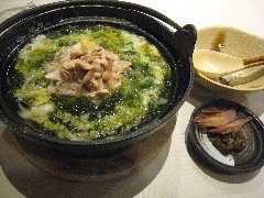 「軍ちゃん」のカレイの塩焼き | 「軍ちゃん」の鮭とあおさの磯の香り雑炊 (絶品です!) |