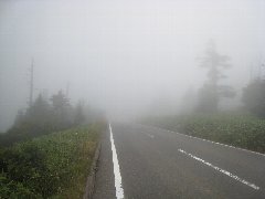 | 志賀高原、国道292号からの景色B (突然の濃霧です) |