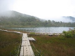 草津白根の弓池@ (霧が掛かって幻想的) |