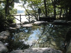 秋山郷、「萌木の里」の露天風呂 (かなり温いです) |