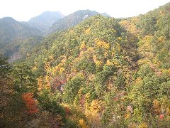 | みずがき湖ビジターセンター前の紅葉 | 本谷川の紅葉 | クリスタルラインの紅葉@ (この辺りが一番赤かったです) |