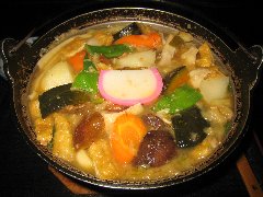 塩山、「七福」のほうとう (野菜がたっぷりです) |