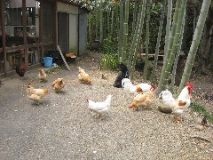 ササヤ」のニワトリ (自由に歩き回っています) |