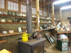 ササヤ」の店内 (たくさんの陶器が並びます) |