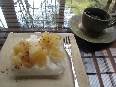 ササヤ」のコーヒーとモッフル (コーヒーは豆から挽いて作ります) |
