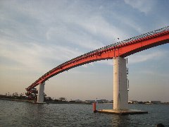木更津、中の島大橋 (長さ236m、高さ27mもある歩道です) |