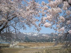 | 石打、桜と当間山 (まだ雪が残ります) |