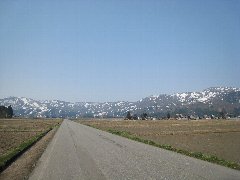 小千谷、金倉山へ向かう農道からの景色B (道が雪で塞がれていました・・・) |