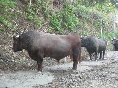 小千谷、闘牛場の近くにいた闘牛 (赤牛という種類だそうです) |