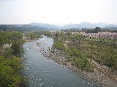 鼓岡大橋からの景色 (胎内川と桜並木) |