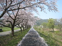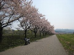 | 鼓岡大橋の近くの桜並木@ (果てしなく続いています) |