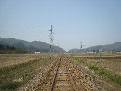 関川村、米坂線の線路 (直線の先が見えません) |