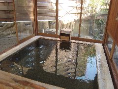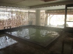 | 「元泉館」の内風呂 (水面に温泉成分が凝固してます) |