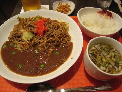会津若松、「ココメデタイヤ」のカレー焼きそば (会津若松のB級グルメの1つです) |