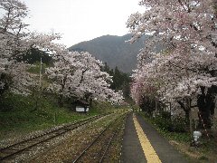 湯野上温泉駅の桜A (電車は当分来ないようでした) |