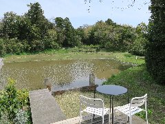 「ホタルカフェ」の裏の田んぼ (ウッドデッキとテーブルがあります) |