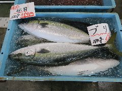| 江見、「カネシチ水産」のブリ (魚屋なので魚を売っています) |