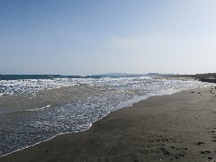 和田町付近の海岸A (遠くまで砂浜が続いています) |