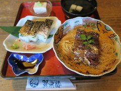 | 「翼果楼」の焼鯖寿司と焼鯖そうめん (焼鯖そうめんが美味しいです) |