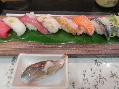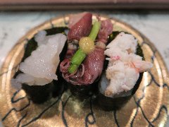 金沢、「すし玉」の季節の地物盛り (回転寿司ですが、美味しいです) |