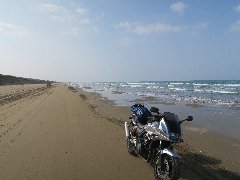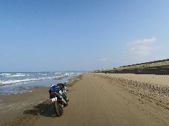| 千里浜なぎさドライブウェイの風景@ (砂浜ですが車もバイクも走れます) |