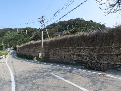 間垣の里、大沢集落の風景@ (季節風よけの高い垣根です) |