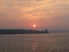 能登島大橋からの夕日 (和倉温泉方面が見えます) |
