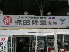 | 道の駅「宙ドーム・神岡」の横断幕 (神岡にはスーパーカミオカンデがあります) |