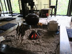 「石動の湯」の内風呂 | 昔ばなしの里、五平餅村の囲炉裏 (こちらで休憩できます) |