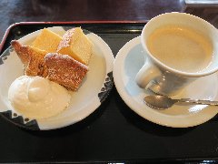 | 鬼怒川、「れすとらん八家」のバウムセット (ろっくバウムが香ばしくて美味しいです) |
