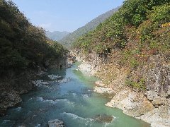 龍王峡、虹見橋からの景色A (鬼怒川の上流方面) |