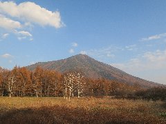 | 日光、戦場ヶ原からの男体山 (夕日に照らされています) |