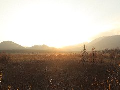 日光、戦場ヶ原の風景 (湿原が輝いています) |