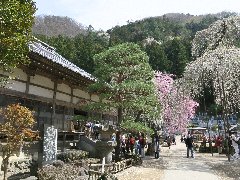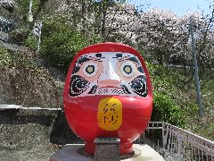 定峰峠付近、秩父寂照院の巨大ダルマ | 秩父寂照院の桜並木 (急斜面に桜がいっぱいです) |