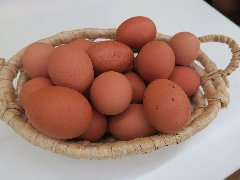 | 芝山千代田、「たまご屋さんコッコ」の卵 (テーブルに置かれた赤玉の卵) |