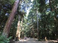 鹿島神宮の奥参道 (巨大な木に囲まれ荘厳な雰囲気) |
