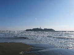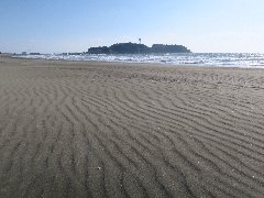 | 片瀬海岸からの江ノ島@ (風が強くて風紋が出来ます) |