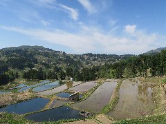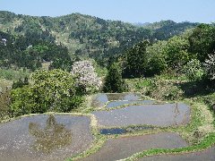 国道253号沿い、儀明の棚田 (桜はわずかに残っていました) |