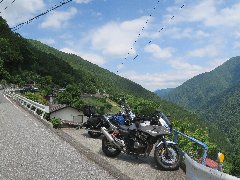 梅雨の晴れ間です。中央道から野辺山方面に行くか秩父へ行くか決まらず、集合場所の釈迦堂PAについてから行き先を考えました。結局、行った事が無い西沢渓谷、三峯神社へ行きたかったので、秩父方面へ向かいました。 先ずは、フルーツラインで塩山まで行き、駅の近くのパン屋で朝食、出来立てで美味しかったです。峠に向かう前に温泉に寄りました。最近のツーリングでは温泉に行ってなかったので久々です。それから西沢渓谷を少し歩いてみました。片道約30分の二俣吊橋まで行って戻りました。滝はもっと奥ですが、新緑がきれいで十分楽しめました。 雁坂トンネルを抜けて秩父市に入ります。秩父往還の栃本に寄ってみました。奥深い山の斜面に集落がありました。急な斜面には畑がありますが、どうやって生計を立てているのでしょうか。それから、以前紅葉の時期に、時間切れで諦めた三峯神社へ行ってみました。こちらも山深いですが多くの観光客が集まっていました。三峯神社は、何となくお金持ってるなあという雰囲気でした。残念ながら茶屋の名物であるみそでんがくも蕎麦も売り切れでした。そして道の駅でおやつと食べ、秩父駅の近くで夕飯を食べてから帰りました。 朝は晴れていましたが、午後は雲が多かったです。西沢渓谷で歩き、三峯神社で歩き、帰るころにはかなり疲労感がありました。でも西沢渓谷も栃本も三峯神社も初めて行くことが出来てよかったです。久々の温泉もよかったです。帰りの高速はちょっと寒いくらいでした。 |