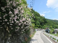 栃本関所付近の風景C (石垣にきれいな花が咲いていました) |