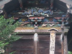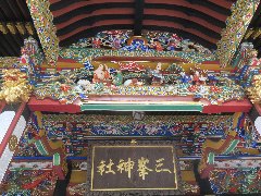 三峯神社の拝殿の装飾 (極彩色の彫刻がびっしり) |