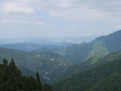 三峯神社の遥拝殿からの景色 (遥か遠くに秩父の街が見えます) |