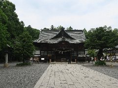三峯神社の拝殿 (左右のご神木には触れます) |