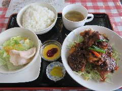 秩父、「ふくくるしょくどう」の唐揚麻婆 (ボリュームあって美味しいです) |