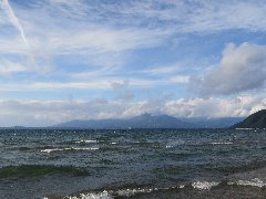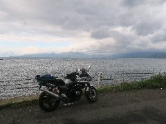 | 猪苗代湖畔に出ました (磐梯山は雲の中) |