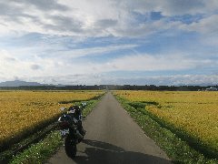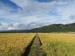 猪苗代湖近くの田んぼA (あぜ道がひたすら続いています) |