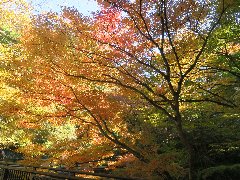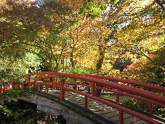 | 伊香保、河鹿橋の紅葉@ (温泉街の奥に太鼓橋があります) |