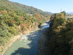 吾妻峡、ふれあい大橋からの景色 (吾妻川の両岸が切り立っています) |