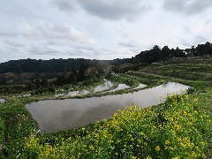 鴨川二子棚田の風景B (菜の花が映ってきれいです) |