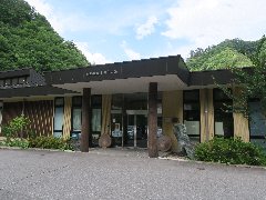 上野村、「しおじの湯」の外観 (峠道を下った場所にあります) |